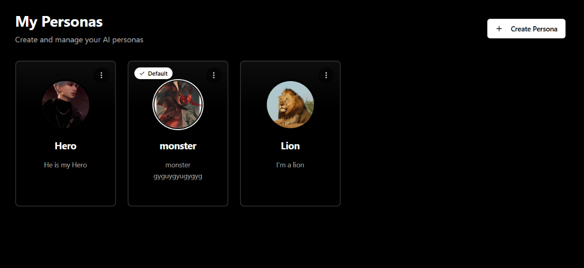 Personas let you define your chat identity. Each persona can have its own name, description, and avatar.